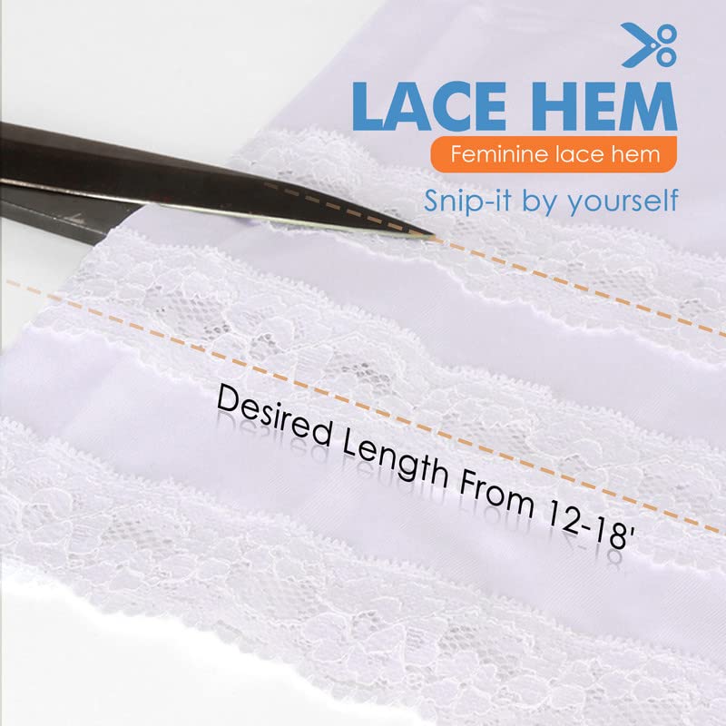 ăFeminine Half SlipăThe length of the half slip are designed with a lace edge and a length below knee . With an elastic waist and pull on closure, this snip-to-fit slip pants is easy to put on and off.Swing freely when wearing, providing you with the ultimate comfort experience.