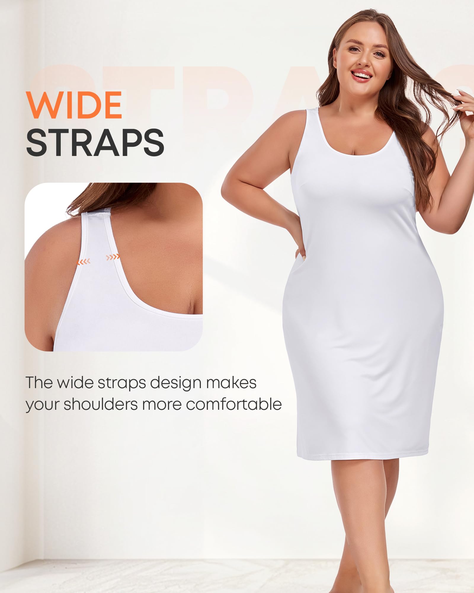 MOSCOAL Plus Size Full Slip for Women Under Dress Slips Wide Straps Slip Dress Tank Top Underdress
