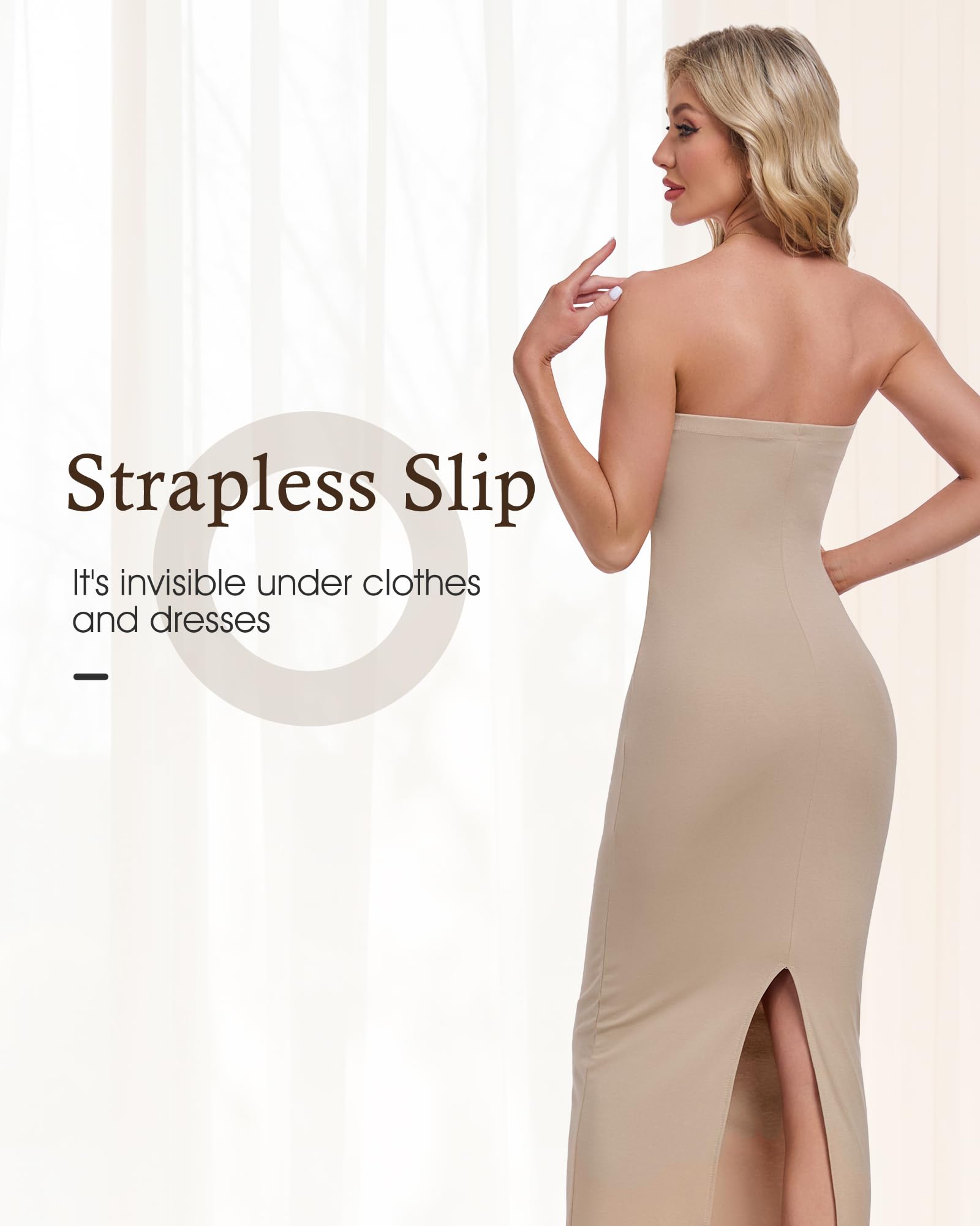 - Chest Control Slips: With its anti-slip chest, strapless dress for women won't slide down from walking, and the smooth full slip flatters your whole body and stays in place. A super comfortable fit that hugs your curves and will not bother you while wearing it.