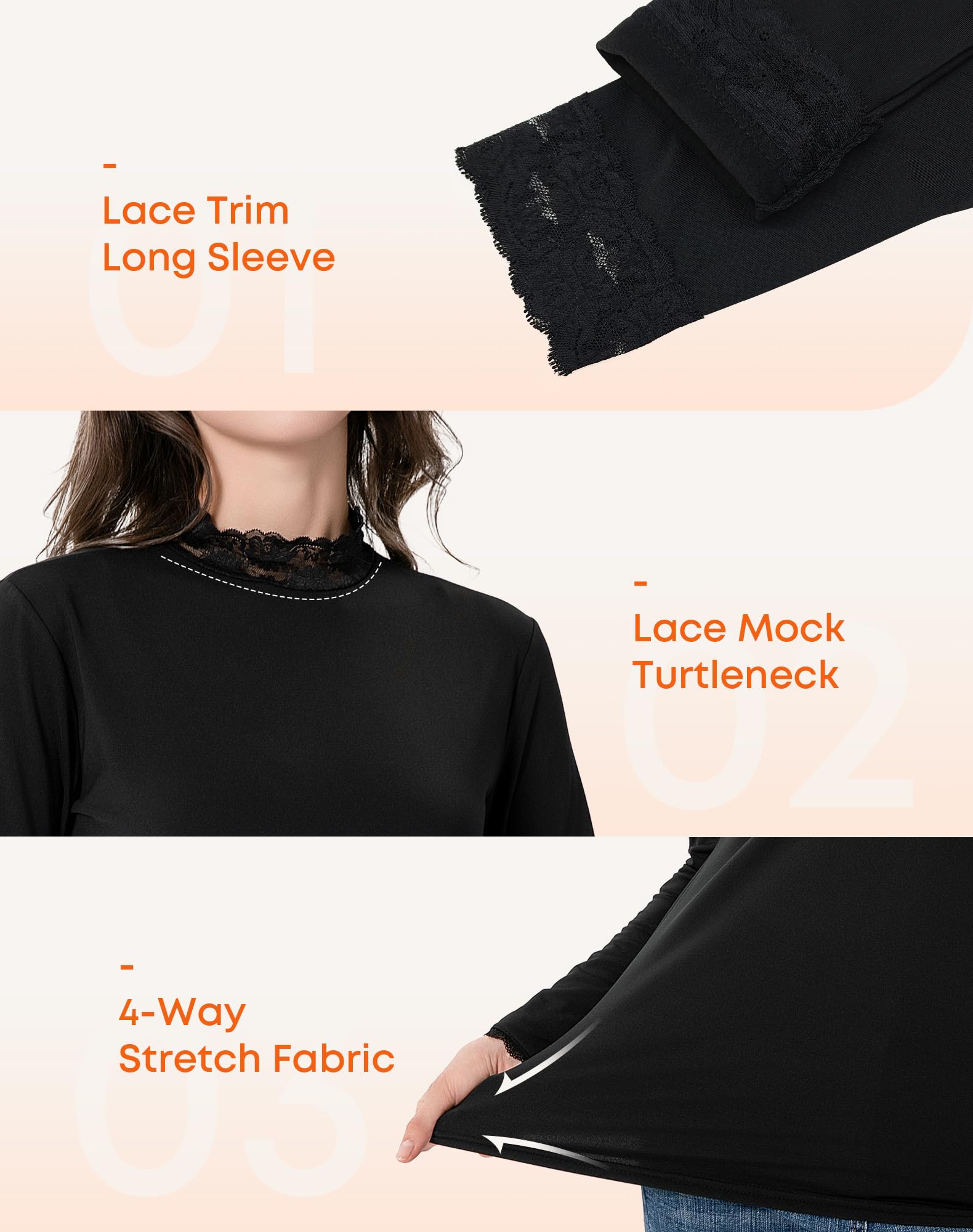 - Elegant Lace Accents: The turtle neckline and cuffs feature exquisite lace trim, infusing the design with a touch of femininity and sophistication. Whether you're dressing casually or preparing for a special event, this womens turtleneck thermal tops ensures you will make a memorable impression
