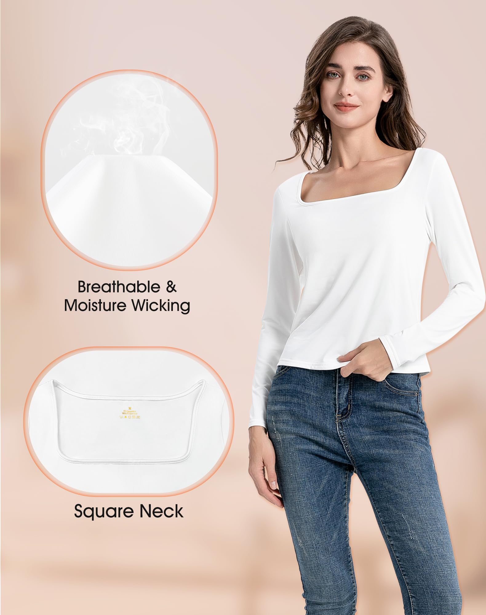 Square Neck Design: The classic square neck thermal long sleeve women can be perfectly hidden under the outer. The long sleeve undershirt for women has a lower neckline and the cuffs are just the right length, making it perfect to match with a sweater or shirt