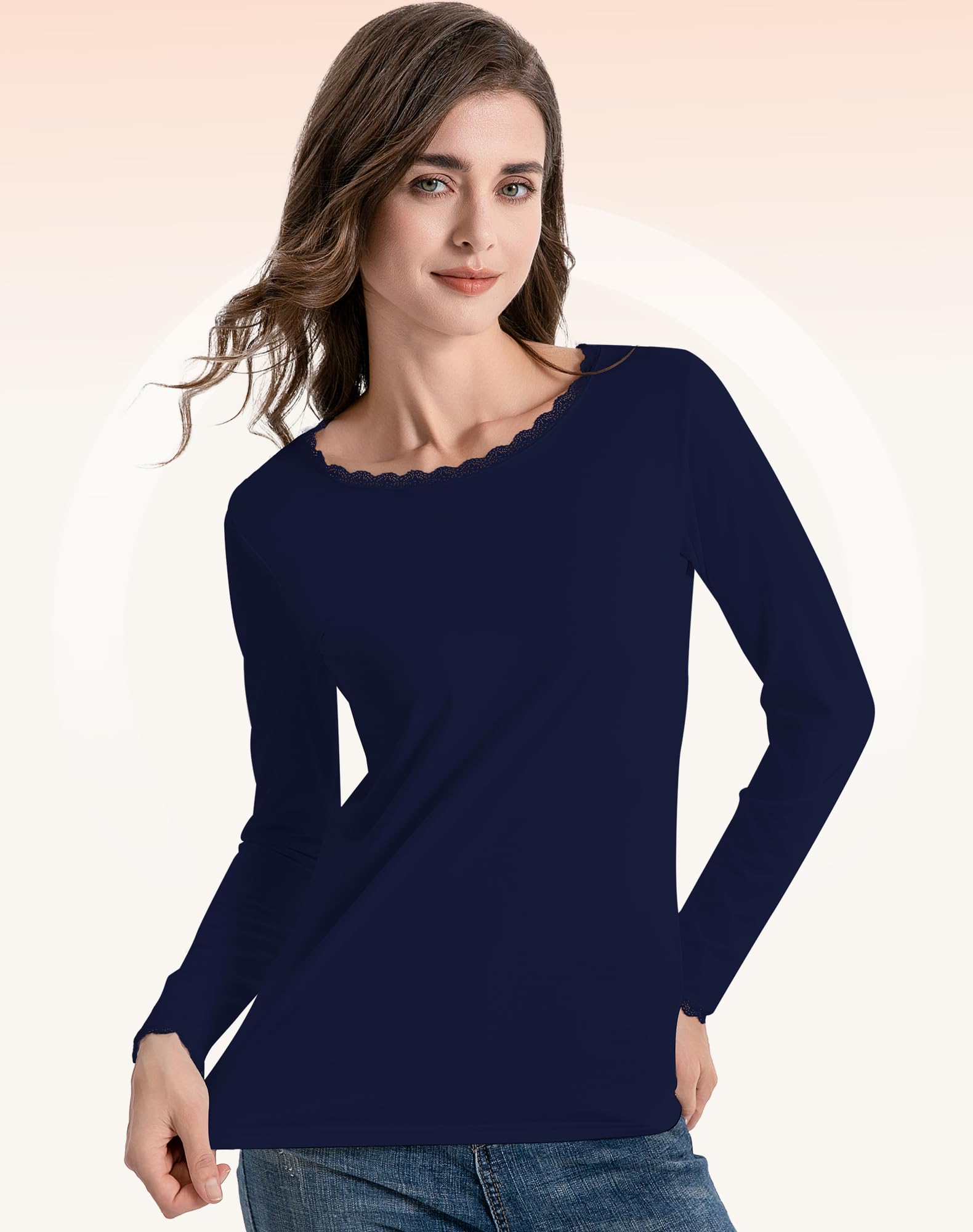 Attention to Detail: This thermal top is characterized by meticulous craftsmanship, from the delicate lace trim to the precise stitching, which enhances its overall quality. These thoughtful details not only elevate the sophistication of your outfit but also ensure you capture attention, whether worn alone or layered